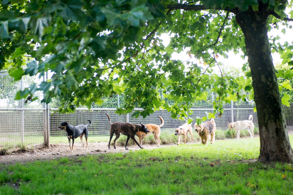We hebben 8 speelweides zodat we verschillende groepjes kunnen maken. Wij maken groepjes op basis van grote en kleine honden en op basis van energie niveau, rustige honden worden dan niet ondergesneeuwd door de drukkere honden. Uiteraard houden wij hier ook goed toezicht op.