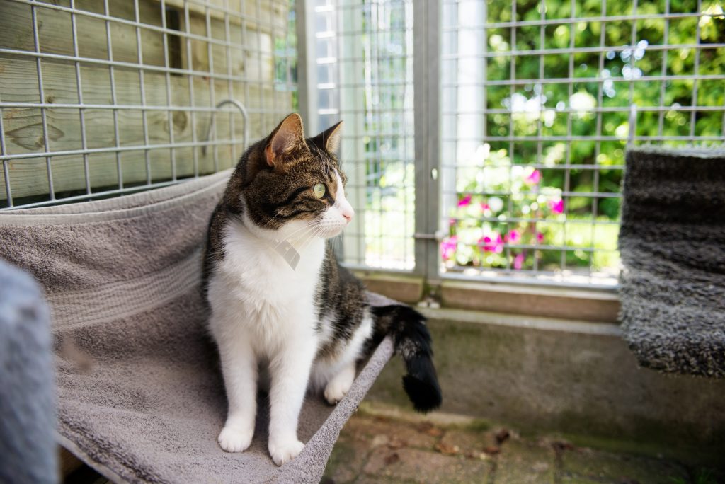 Voelt een kat zich toch niet helemaal op zijn gemak dan staan er in het verblijf ook aparte kattenverblijven. De kat zit dan wat hoger en kan vanuit zijn eigen veilige omgeving wel het verblijf in kijken en zo meer vertrouwen opdoen. Meestal kunnen ze dan na 1 a 2 dagen alsnog los in het verblijf rondlopen.